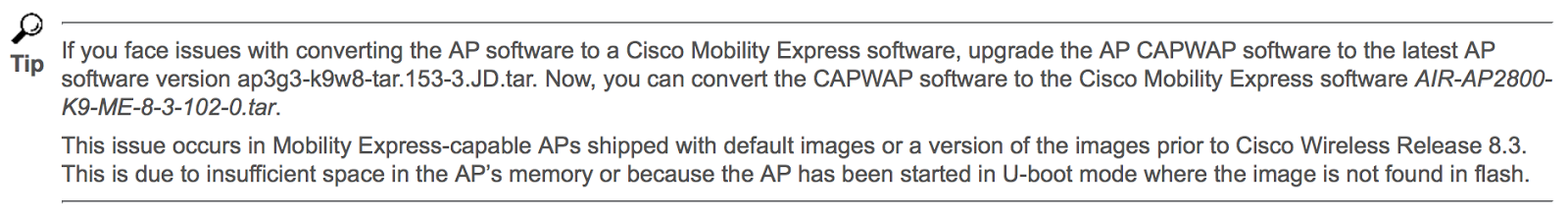 AP#ap-type mobility-express tftp://a.b.c.d/AIR-AP3800-K9-ME-8-3-102-0.tar