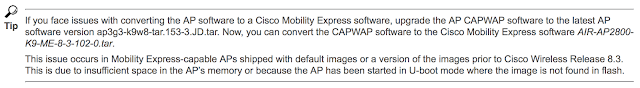 Just got Cisco Aironet 3802i into my hands. Wanted to convert it into standalone aka autonomous mode... oh wait, it's gone. Mobility Express, this is what we have now.