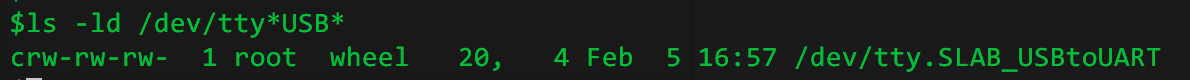 Step 3: Connect to this virtual COM using your favorite terminal emu. Remember to adjust settings (Default: 9600/8/N/1). Screen is the one you probably already have. If you didn't change default configuration then you are ready to go. Just type `screen /dev/tty.SLAB_USBtoUART`